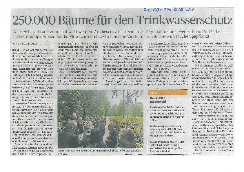 Hierzu wurde auf Initiative der Stadtwerke Kleve eigens eine Kooperation mit dem Staatlichen Forstamt ins Leben gerufen.