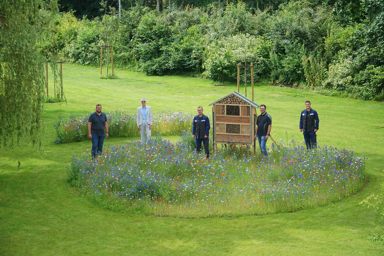 Aus diesem Anlass wurde am Kundencenter in der Flutstraße eine weiträumige Wildblumenwiese gepflanzt und ein Insektenhotel aufgestellt.