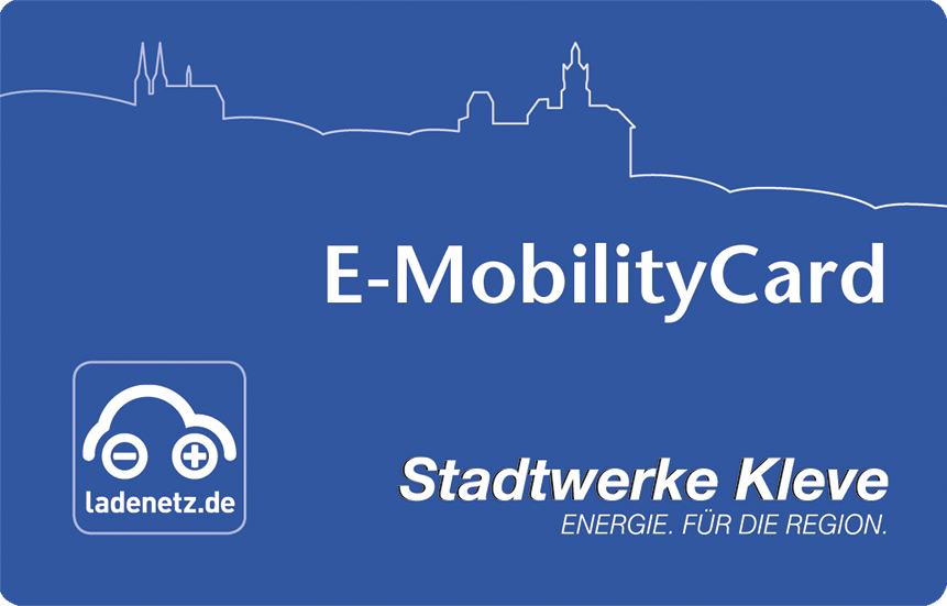 Mit unserer Ladekarte, der E-MobilityCard, können Sie Ihr Elektrofahrzeug bequem und schnell aufladen – und das, neben den Ladestationen hier in Kleve, an sämtlichen Ladestationen des ladenetz.de-Verbunds. Durch zusätzliche Kooperationen mit anderen Betreiberunternehmen haben Sie mit der E‑MobilityCard auch Zugang zu weiteren Lademöglichkeiten. Alle verfügbaren Ladestationen finden Sie auf der lademap oder mobil in der ladeapp (erhältlich im AppStore oder bei GooglePlay).